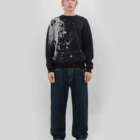 Loose fit knitted sweater. Jacquard knitted artwork.